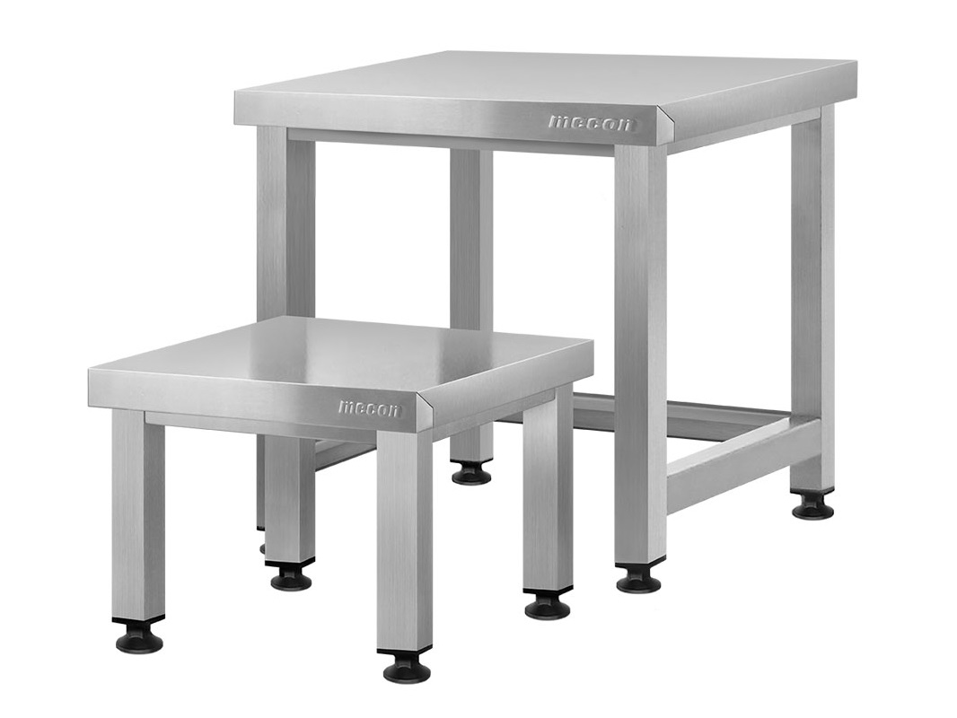 Подставка для оборудования ПДОп PROFI, выполненная из нержавеющей стали, представляет собой прочную и надёжную конструкцию, каркас которой изготовлен из профильной трубы 40x40 мм. Она разработана для установки различного оборудования, обеспечивая его устойчивость и безопасность во время эксплуатации.