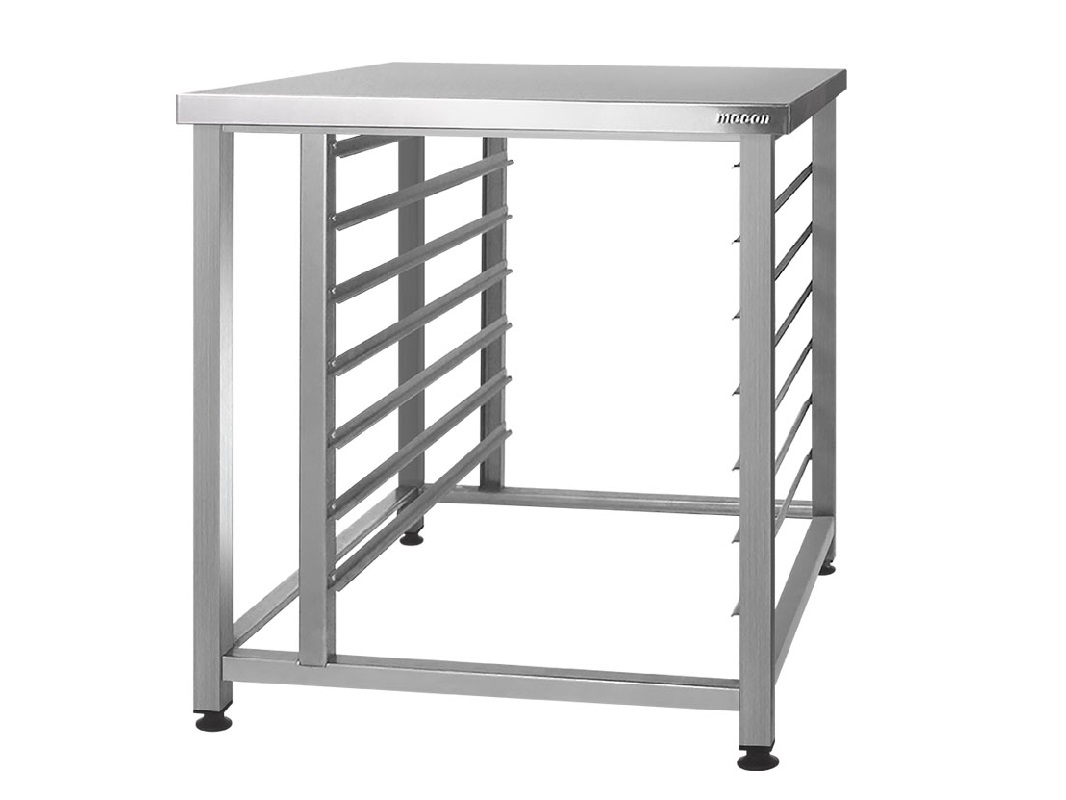 - Подставка значительно упрощает процесс загрузки и выгрузки гастроёмкостей из пароконвектомата, что, в свою очередь, ускоряет приготовление блюд и делает его более удобным;