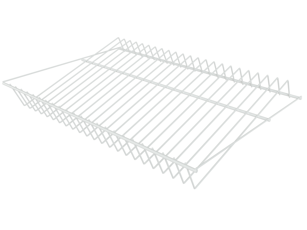 Полка является элементом гардеробной системы и предназначена для размещения и правильного хранения обуви. Благодаря небольшому уклону и специальному зонированию предметы компактно располагаются и занимают меньше пространства.