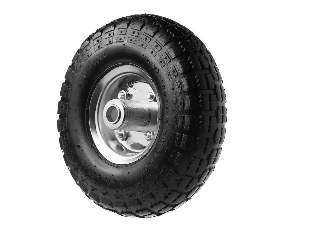 Колесо пневматическое 3.50-4 с несимметричной ступицей, металлическим ободом и шариковым подшипником, ось 20 мм PR 1800-20n (250 мм/180 кг) предназначены для садовых и строительных тачек, а также для четырёхколёсных тележек с поворотной осью, рассчитанных на использование в различных условиях, включая уличные.