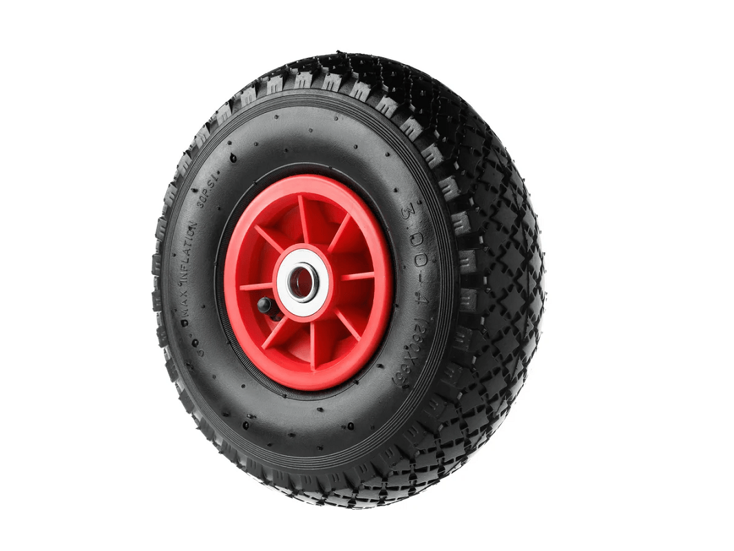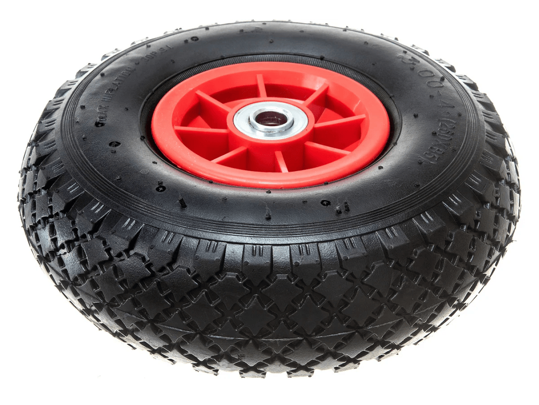 Колесо пневматическое 3.00-4 с симметричной ступицей, пластиковым ободом и шариковым подшипником, ось 16 мм PR 1806-16 (260 мм/150 кг)