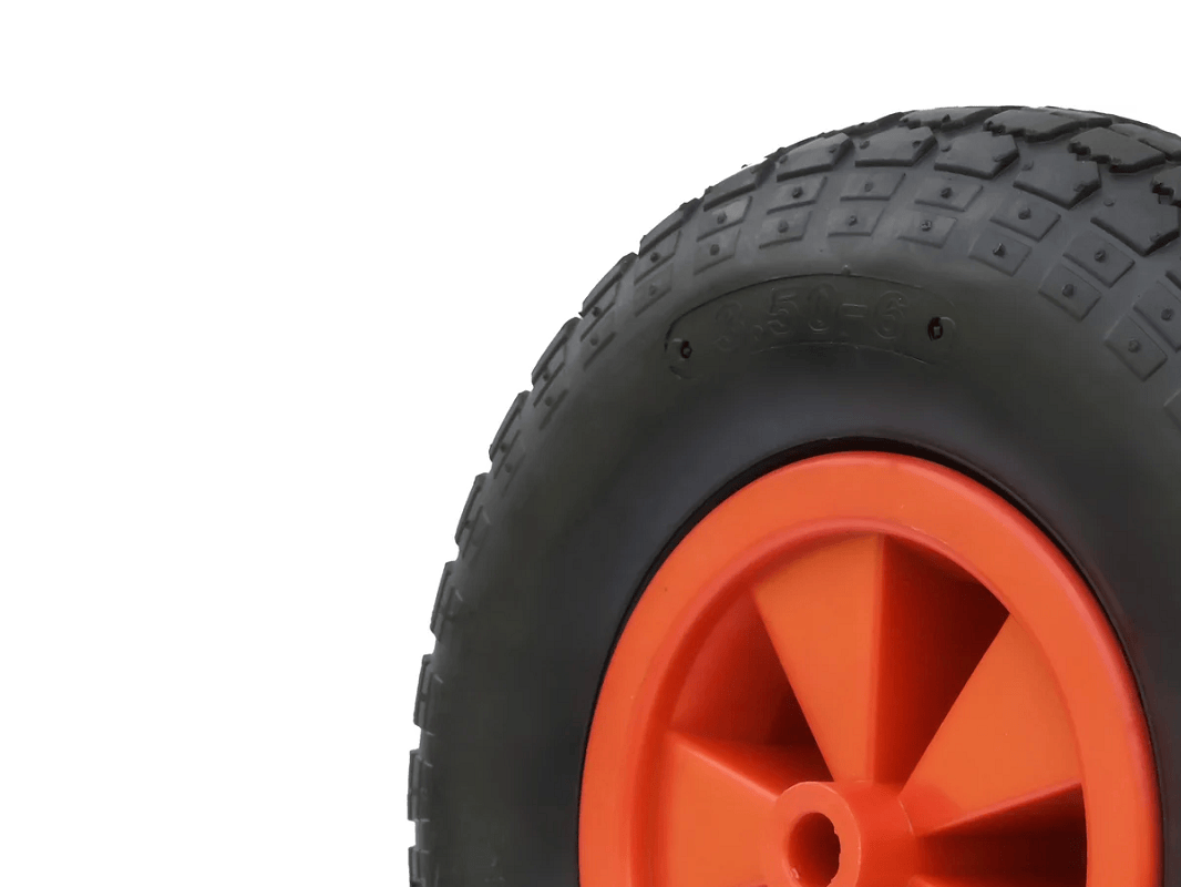 Колесо пневматическое 3.50-6 с симметричной ступицей, пластиковым ободом и втулкой скольжения, ось 16 мм PR 2002-16 (320 мм/170 кг)