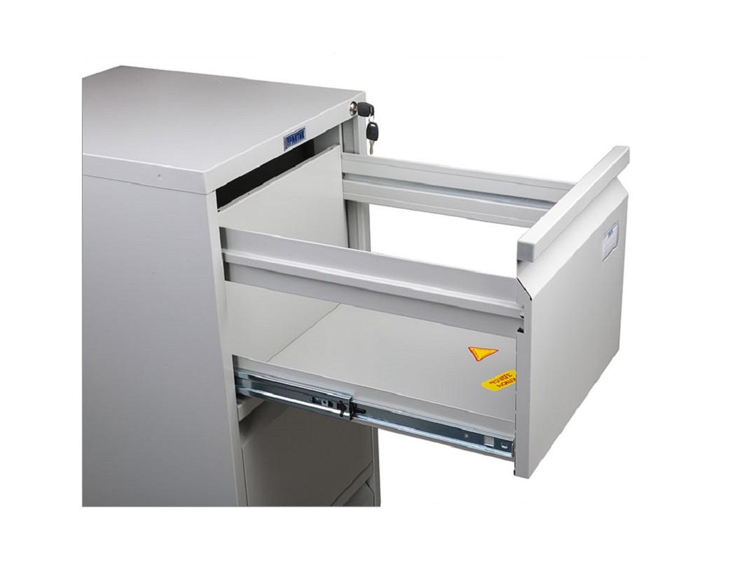 Картотека A-42 — это удобный органайзер для папок формата А4 и мелкой канцелярии. Она оснащена двумя выдвижными ящиками с системой полного выдвижения и телескопическими направляющими. Максимальная нагрузка на один ящик — 20 килограммов, что предотвращает опрокидывание при одновременном открытии обоих ящиков. Имеет внутренние размеры ящика (ВхШхГ) 255х327х424 мм.