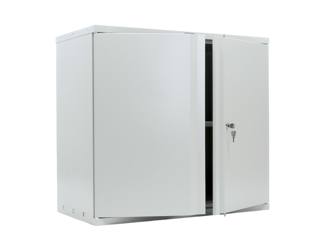 Стандартный цвет шкафа — серый полуматовый, но по вашему желанию его можно окрасить в другие цвета по шкале RAL. Этот компактный шкаф имеет высоту 832 мм и весит всего 23 килограмма. Он поставляется в разобранном виде, что значительно упрощает его сборку.