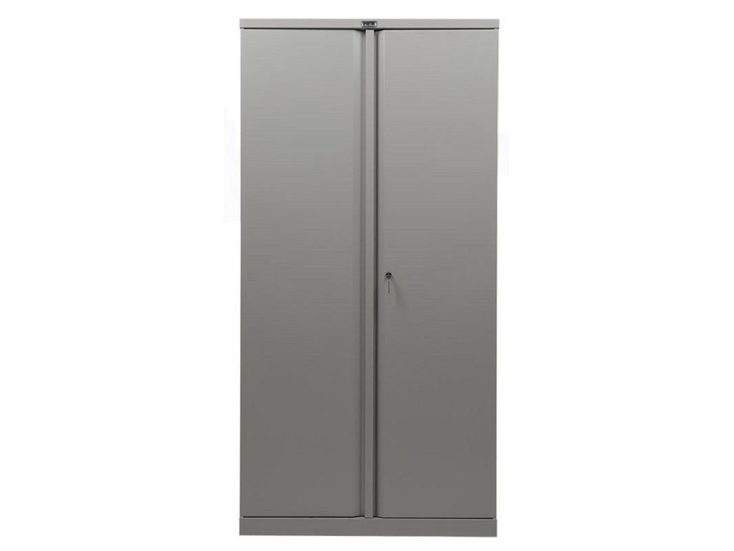 Стандартный цвет шкафа — серый полуматовый, однако при желании его можно окрасить в любые другие цвета по системе RAL. Этот большой двухсекционный шкаф обладает габаритами 1996х915 мм и весит не более 50 кг, что делает его удобным для транспортировки в разобранном виде.
