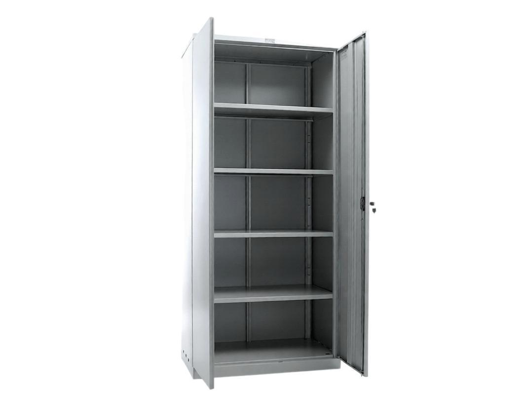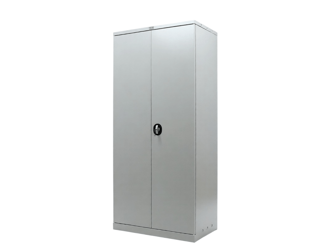 Стандартным цветом шкафа является серый полуматовый, однако по вашему желанию его можно окрасить в другие цвета по системе RAL. Этот большой двухстворчатый шкаф имеет высоту 1860 мм и весит всего 41 килограмм в собранном виде. Поставляется в разобранном виде.