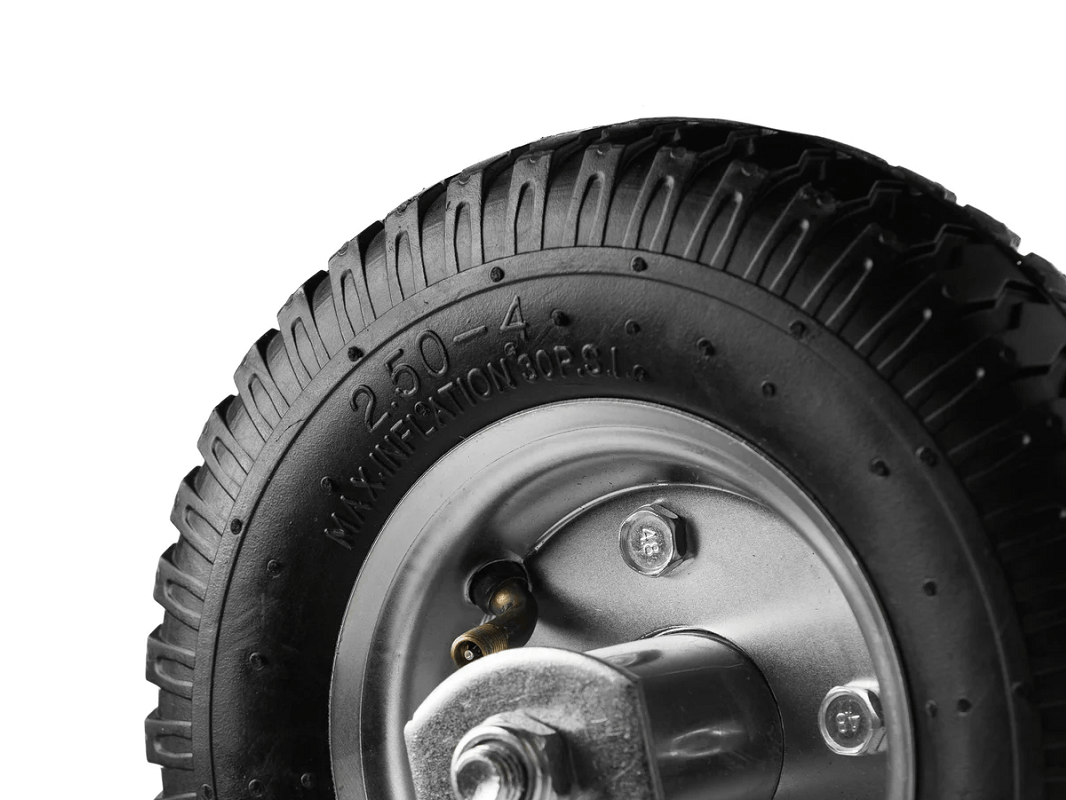 Колесо пневматическое 2.50-4 с неповоротной платформой и стальным ободом PRF 80 (диаметр 218 мм, грузоподъемность 100 кг) оснащено прессованным стальным ободом, шарикоподшипником и платформенным креплением. Оно обеспечивает устойчивое движение тачки по неровным поверхностям. Колесо выдерживает большие нагрузки, не деформируясь при максимальной нагрузке. Его легко установить и при необходимости отремонтировать.