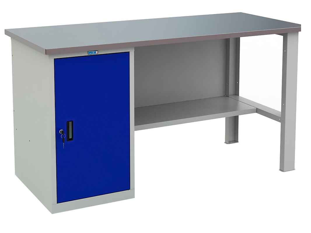 Зачастую это перфорированный экран (плоскость, на которую крепят крючки и держатели для инструментов), упоры, тиски и т. д. При желании клиента можно полностью собрать необходимую подборку из тумб (имеются как с дверцами, так и с выдвижными полками), столешниц (параметры разнообразные, подбирают под требования специалиста, типовые: высота — 80–90 см, ширина — 80–100 см, длина также подбирается индивидуально).