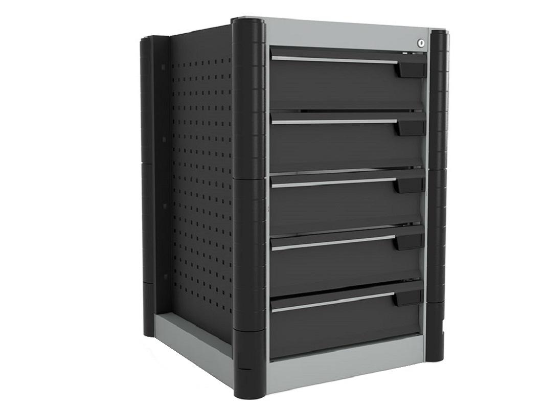 Данная модель оснащена первым вариантом в 2000 мм с максимальной нагрузкой до 1500 килограмм. Верстак укомплектован двумя тумбами, внутри одного 5 выдвижных ящиков с максимальной нагрузкой до 90 килограмм, внутри другого две съёмные полки с максимальной нагрузкой до 120 килограмм. Установлена дополнительная защита верстака от случайных повреждений во время работы, боковые прорезиненные бампера на тумбе. Удобная перфорация стенки тумбы и опоры позволят разместить большое количество самых разных приспособлений (которые продаются отдельно). Универсальные модели позволяют модулировать разные возможные варианты верстаков под все самые разные желания и потребности.