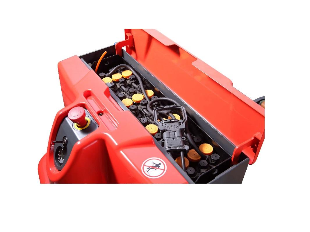 По сути, это полноценный штабелер, но без мачты. В конструкции используются оригинальные компоненты: редуктор Kordel и ведущее колесо Wicke. Фирменная ручка с технологией CAN-BUS обеспечивает удобное управление, а электромагнитный тормоз Intorq обеспечивает безопасность и надежность.