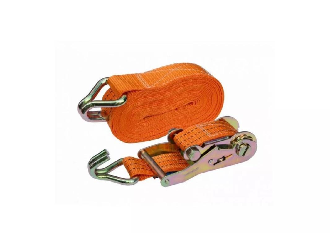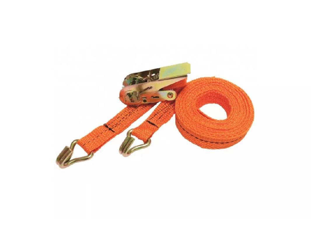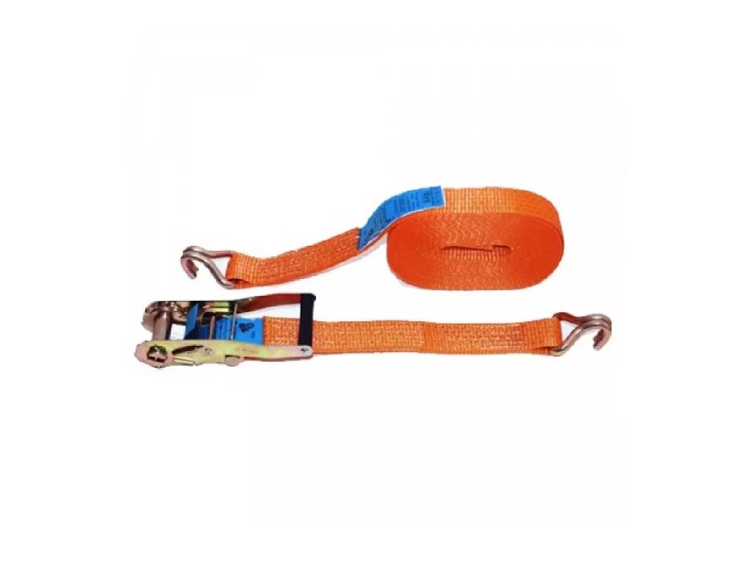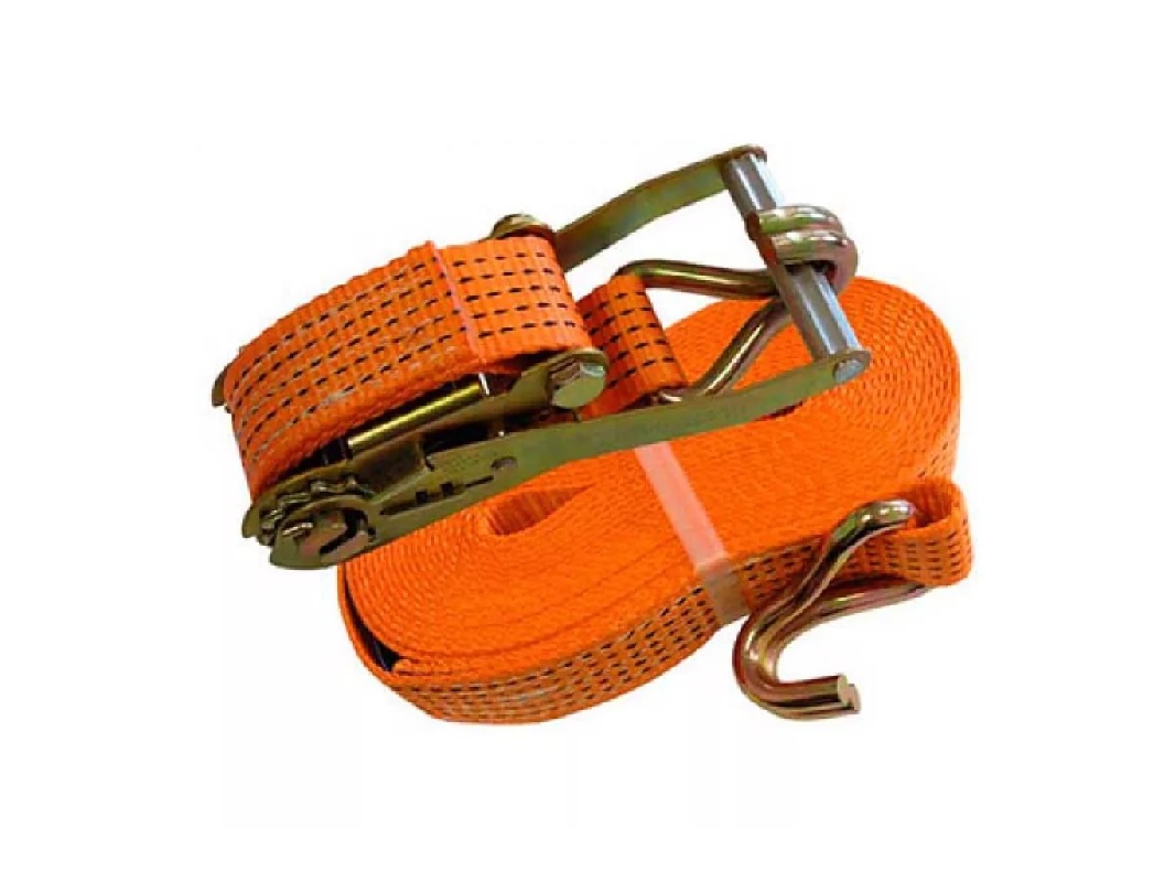 Стяжной ремень с крюками и храповым механизмом — это приспособление, используемое для надёжного закрепления и фиксации грузов при транспортировке и хранении. Он обеспечивает безопасность и стабильность груза, предотвращая его смещение или повреждение.