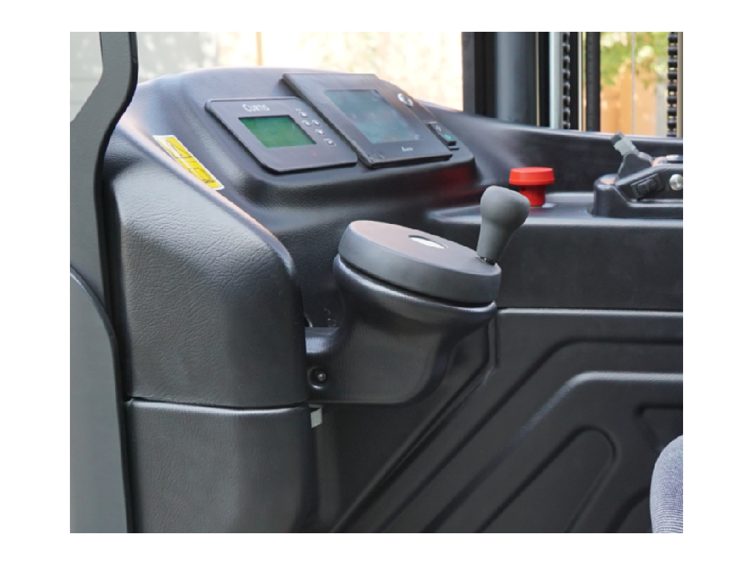 Техника Noblelift выделяется среди конкурентов благодаря ряду преимуществ. Для удобства эксплуатации она оснащена АС-двигателем для передвижения и рулевого управления, а также контроллером Curtis с полным отображением всей необходимой информации. В данной модели управление гидравликой осуществляется при помощи Fingertip-манипуляторов.