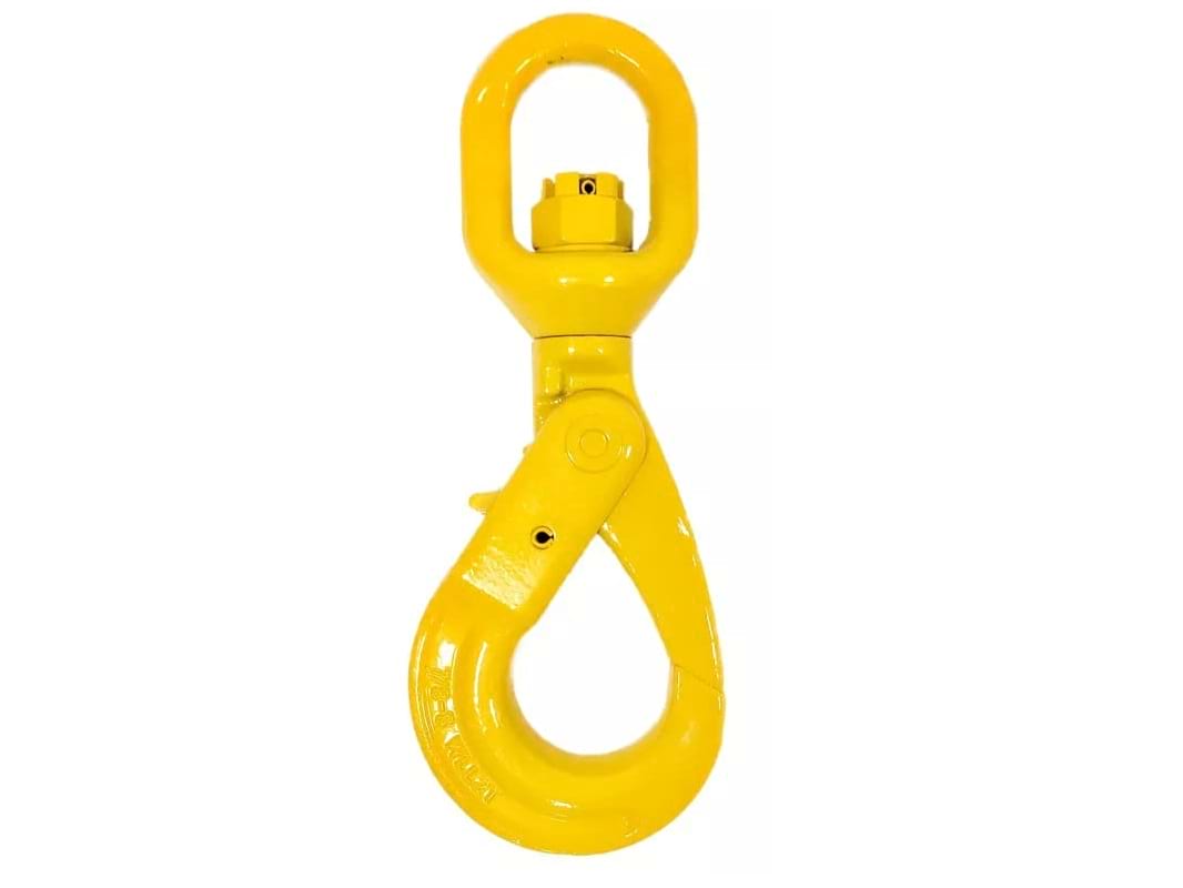 Самозакрывающиеся крюки с вертлюгами широко применяются в грузоподъемных механизмах. Они особенно важны в ситуациях, где безопасность и удобство эксплуатации цепных строп имеют первостепенное значение.
