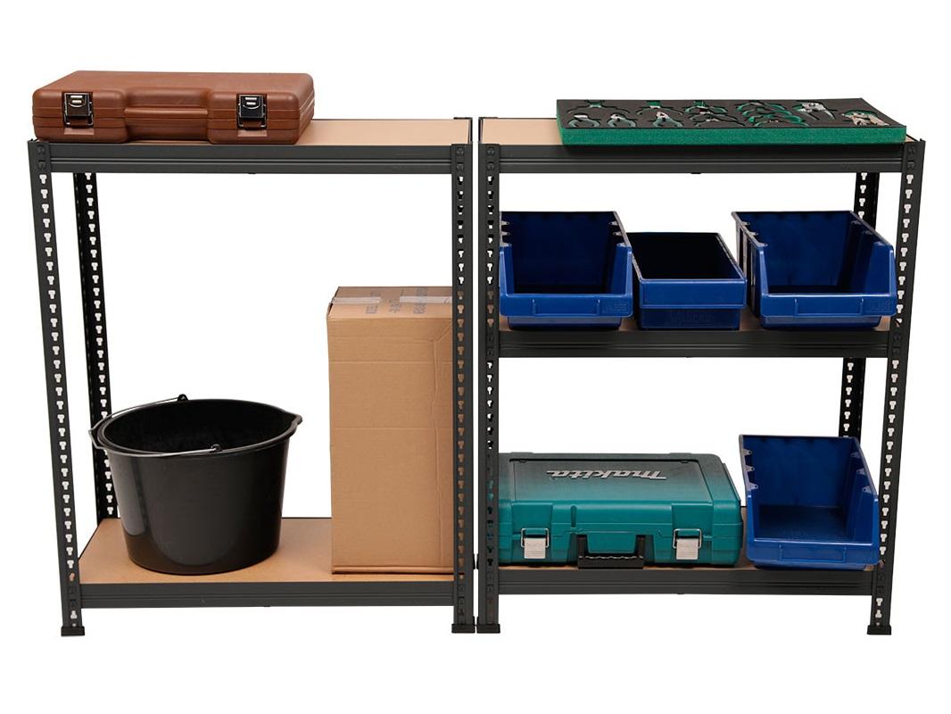 При необходимости можно собрать не один стеллаж габаритами 2000х1200х400 мм, а два небольших, каждый по 1000 мм высотой, полки на этих стеллажах вы сможете разместить сами, как вам будет удобней. Зачастую используют конфигурацию 2 полки на один стеллаж и 3 полки на другой, в комплект входят подпятники для сборки двух стеллажей.