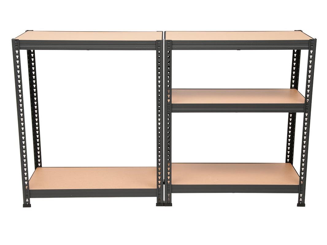 При необходимости можно собрать не один стеллаж габаритами 2200х900х450 мм, а два небольших, каждый по 1100 мм высотой, полки на этих стеллажах вы сможете разместить сами, как вам будет удобней. Зачастую используют конфигурацию 3 полки на один стеллаж и 3 полки на другой, в комплект входят подпятники для сборки двух стеллажей.