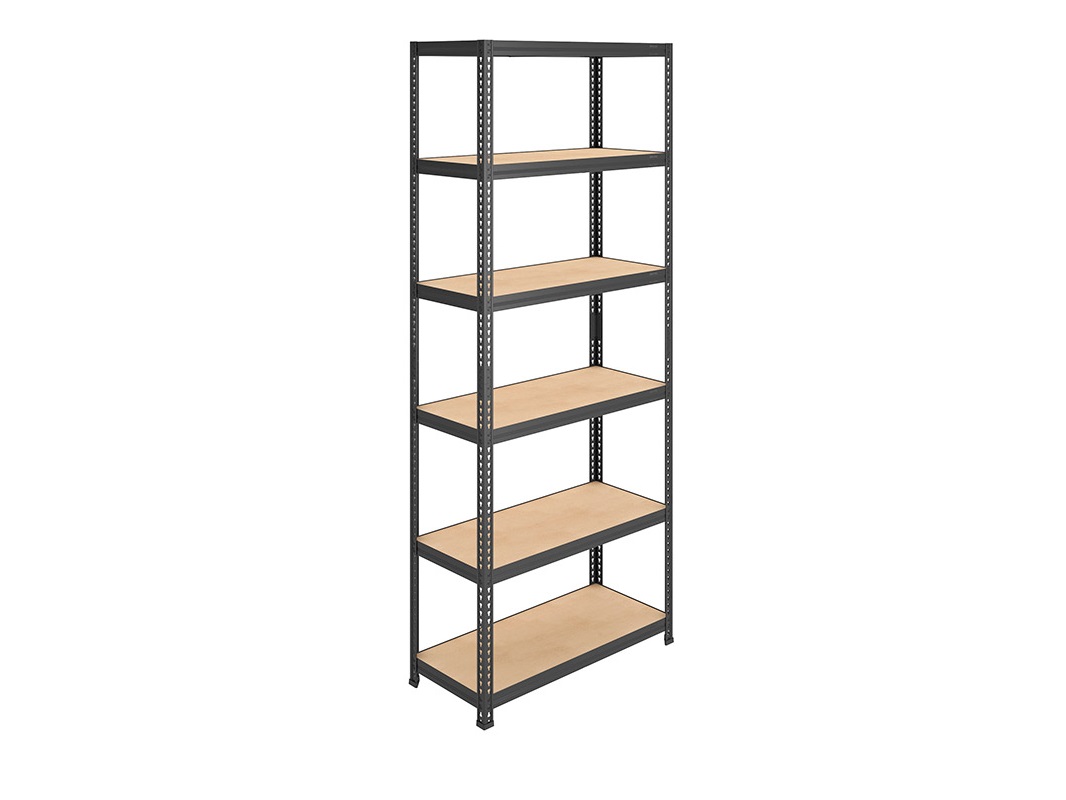 Стеллаж SBL 220KD/90x45/6 имеет небольшие габариты с 6 ярусами для хранения. Собирается без помощи болтов, только на зацепах. Основной инструмент для сборки — это киянка (молоток с мягкой головкой). Стойка имеет шаг перфорации 25 мм, что позволяет установить полки на удобную для вас высоту.