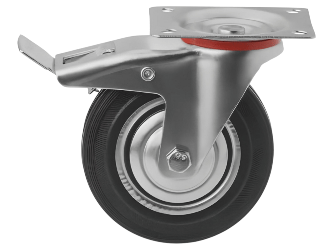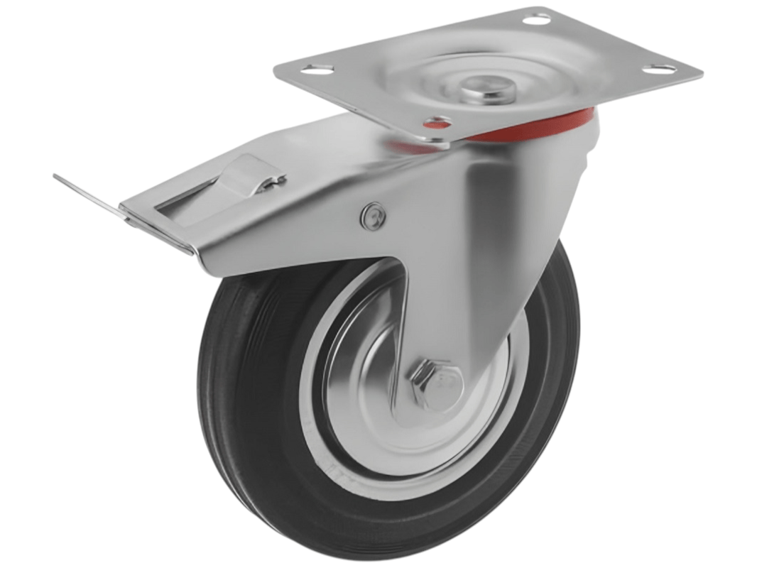 Данная модель поворотных колёс с креплением и тормозом представлена в семи вариациях. Они различаются диаметром — от 75 до 250 мм — и грузоподъёмностью — от 50 до 210 кг. Кроме того, в нашем ассортименте вы найдете промышленные поворотные колёса без тормоза и неповоротные промышленные колёса.