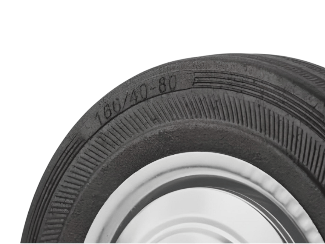 Конструкция колёс включает роликовый подшипник, стальной обод и шинку из черной резины, что обеспечивает плавность и мягкость хода. Однако они менее износостойкие, чем полиуретановые колёса.