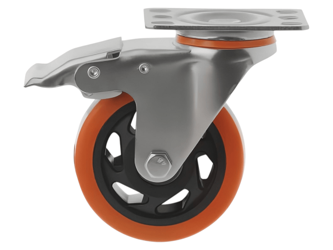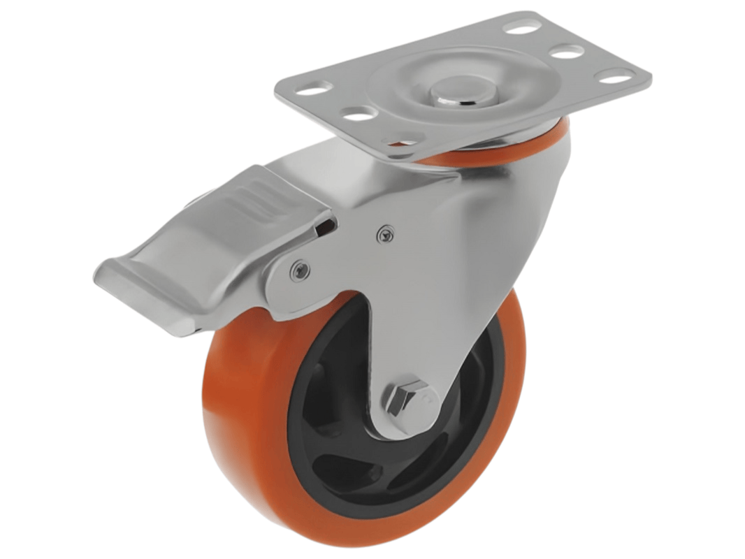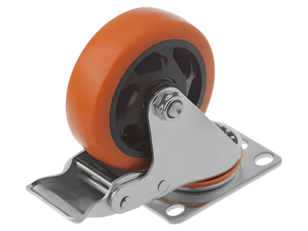 - Особенности: наличие эффективного тормозного механизма позволяет надежно фиксировать колесо в нужном положении, предотвращая нежелательное движение и обеспечивая безопасность и стабильность в работе.