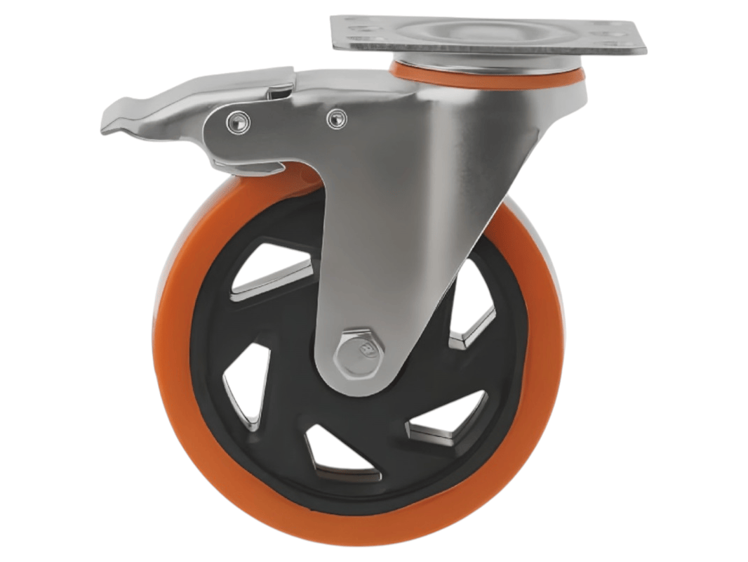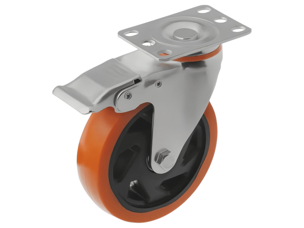 - Особенности: наличие эффективного тормозного механизма позволяет надежно фиксировать колесо в нужном положении, предотвращая нежелательное движение и обеспечивая безопасность и стабильность в работе.