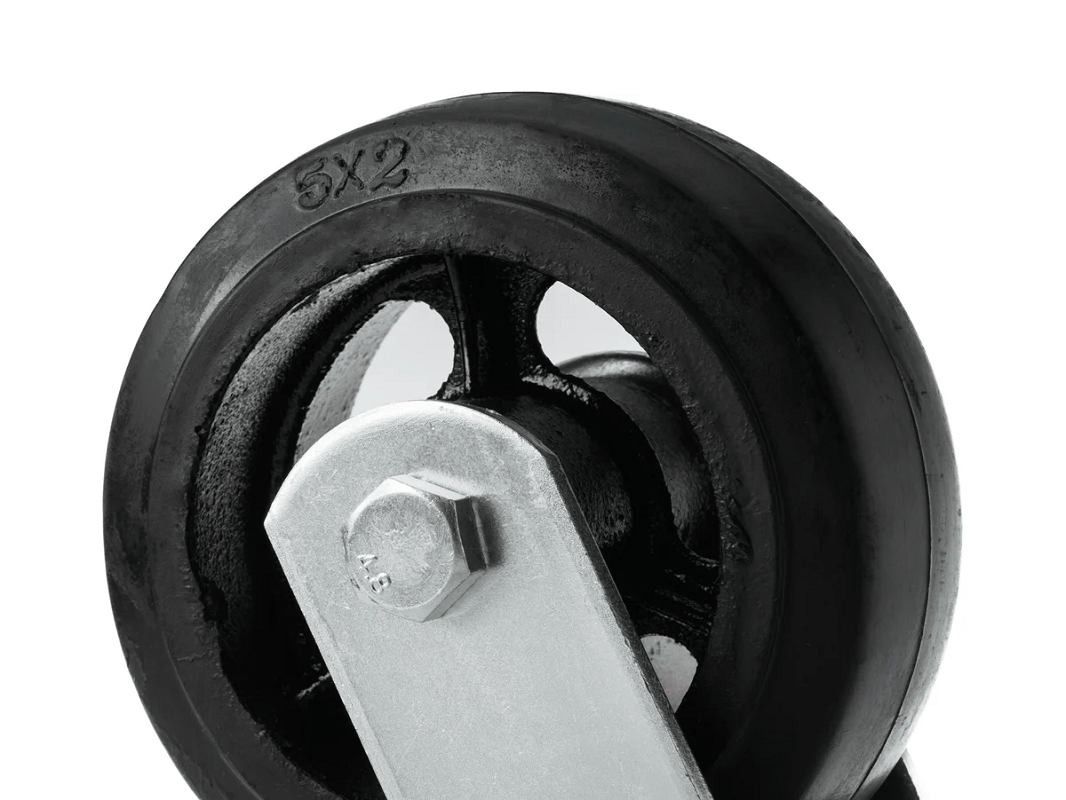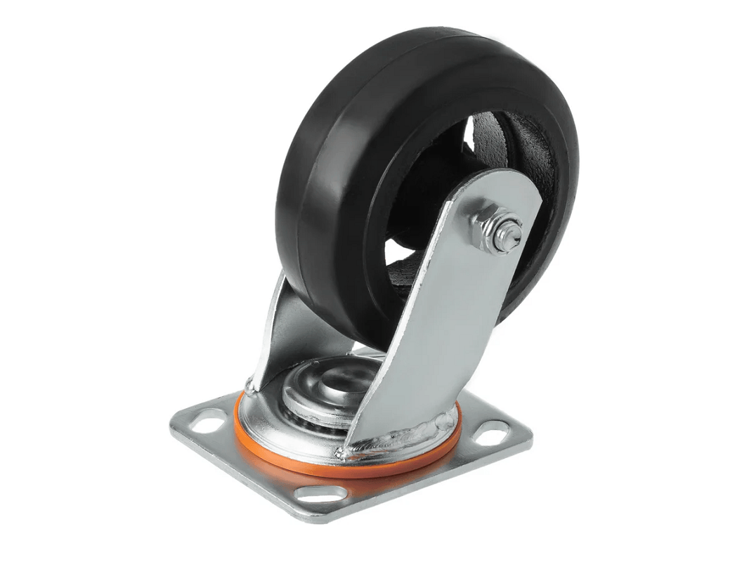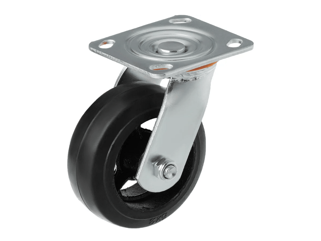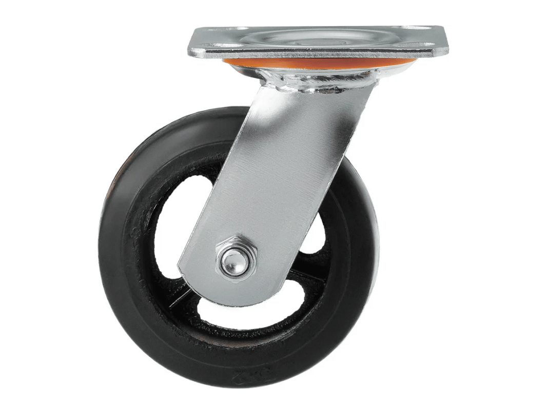 Колесо чугунное большегрузное с неповоротной площадкой и литым резиновым слоем SCD 55 (125 мм/160 кг) – платформа под 4 болта. Поворотный механизм добавляет маневренности и делает эксплуатацию легче и удобнее.