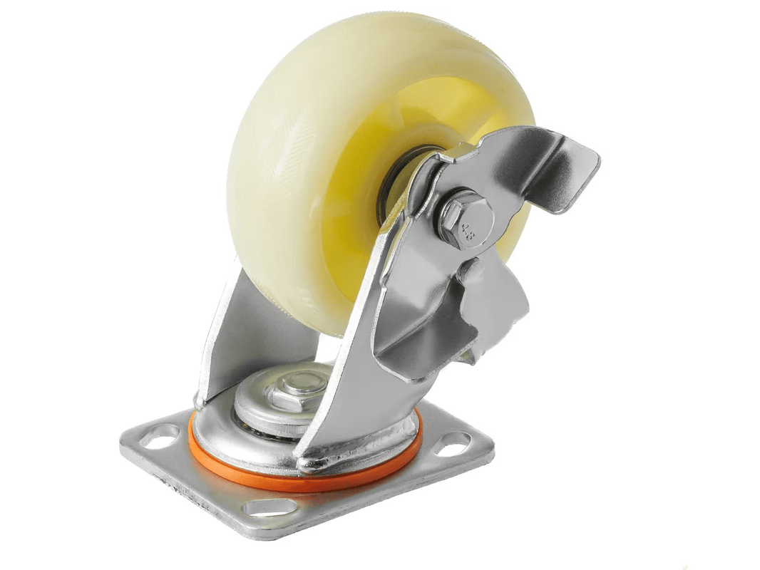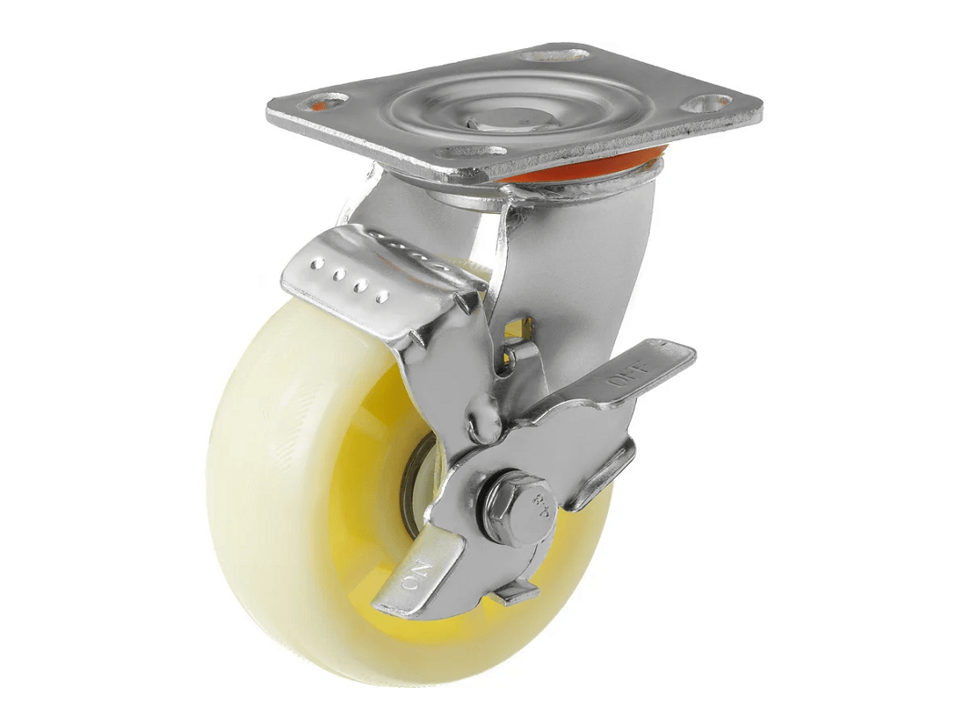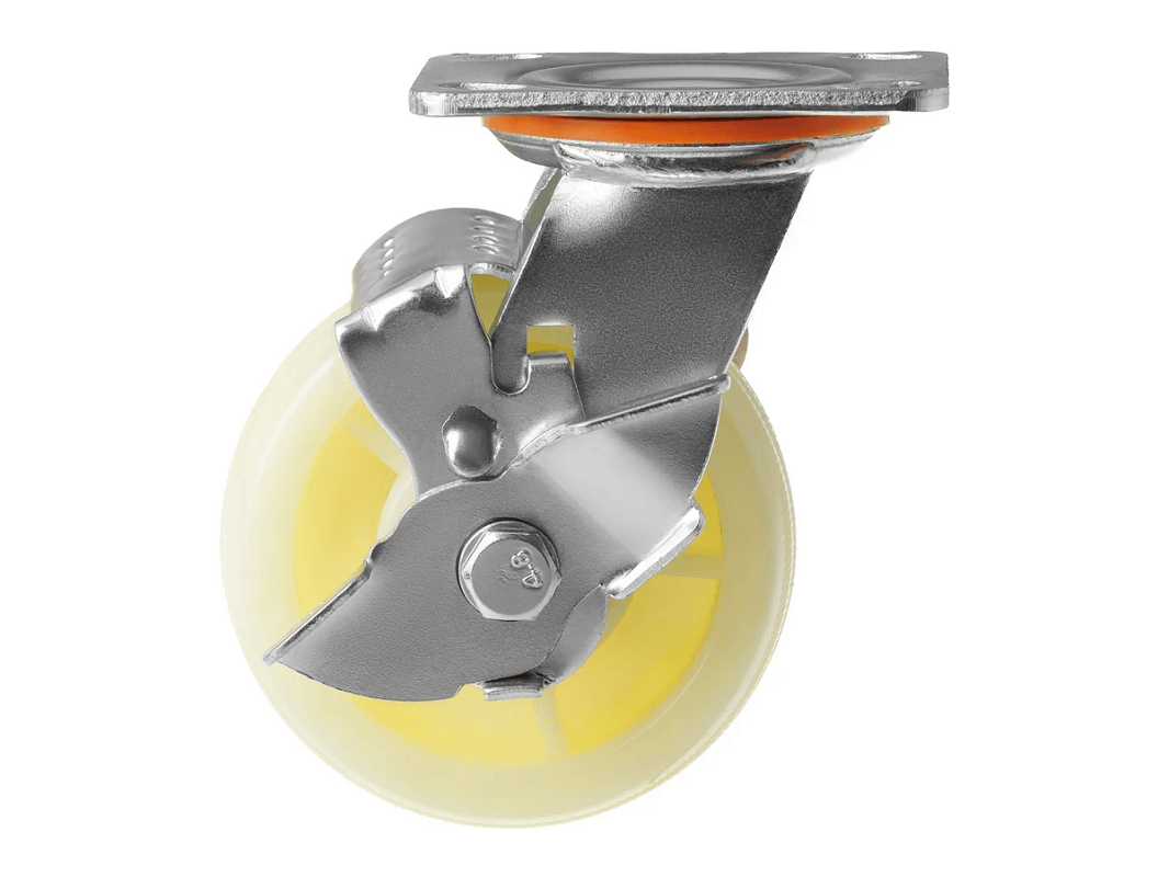 Колесо нейлоновое большегрузное с поворотной площадкой и тормозом SCdbn 55 (125 мм/240 кг) — это специализированные комплектующие, которые используются в различных промышленных и коммерческих приложениях, где требуется высокая грузоподъемность, манёвренность и надёжность.