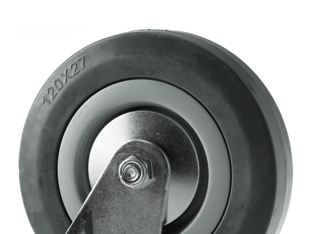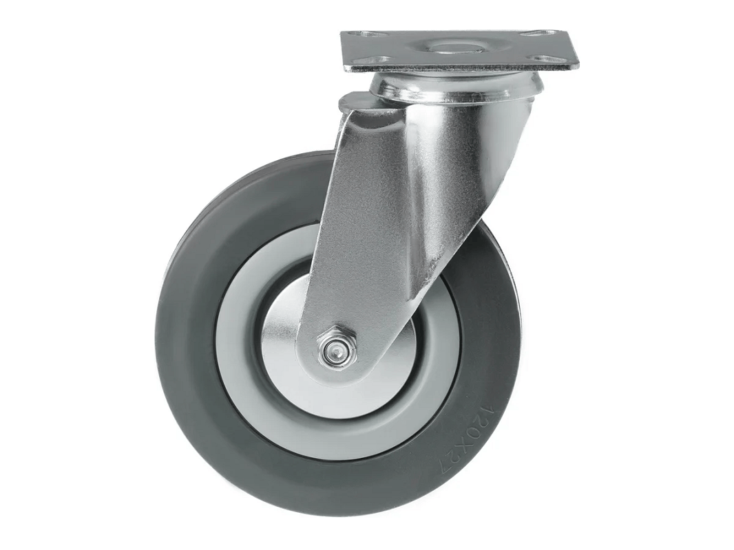 Колесо аппаратное с поворотной площадкой и втулкой скольжения SCg 55 (120 мм/100 кг). Ступица оборудована подшипником скольжения и втулкой, что обеспечивает плавный и тихий ход. Стальной кронштейн, устойчивый к коррозии, надёжно фиксирует конструкцию. Поворотный узел оснащён двухрядным шарикоподшипником, что гарантирует надёжность и долговечность.