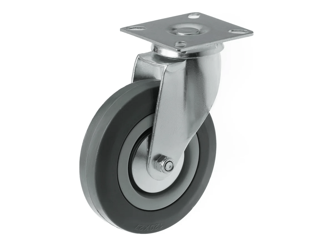 Шинка из термопластичной серо-голубой резины обеспечивает тихий ход, поглощает вибрацию и не оставляет следов на полу. Обладают хорошими ходовыми качествами и манёвренностью. Подходят для использования в условиях строгого соблюдения санитарно-гигиенических норм, так как легко очищаются от загрязнений. Температурный режим применения: от -10С до +50С.