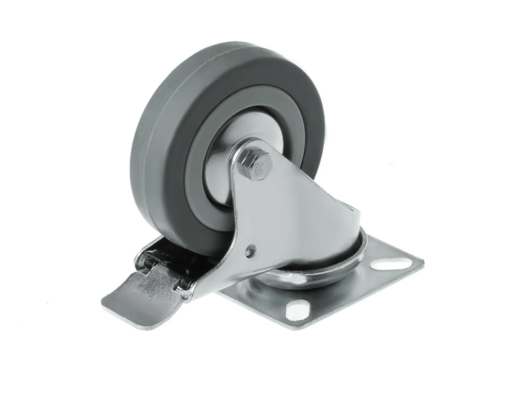 Ножной тормоз со стальным язычком позволяет надёжно фиксировать технику на месте. Эти колёса идеально подходят для небольших нагрузок и устанавливаются на медицинское, торговое, лабораторное и офисное оборудование, а также на мебель и технику, эксплуатируемую в закрытых помещениях.
