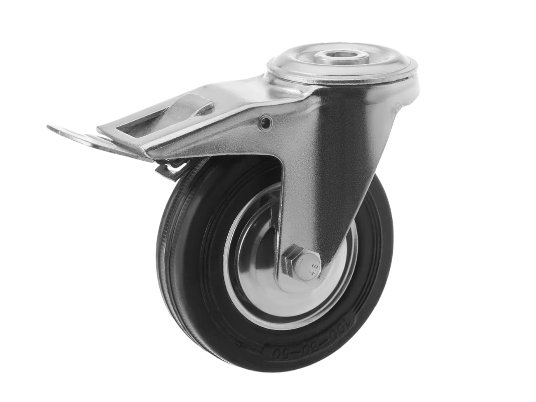 Колесо промышленное под болт М10 и тормозом SChb 93 предназначено для установки на различные виды техники: платформенные тележки, мусорные контейнеры, промышленное оборудование, строительные вышки и другие. Благодаря этому устройству техника становится более маневренной и удобной в управлении.
