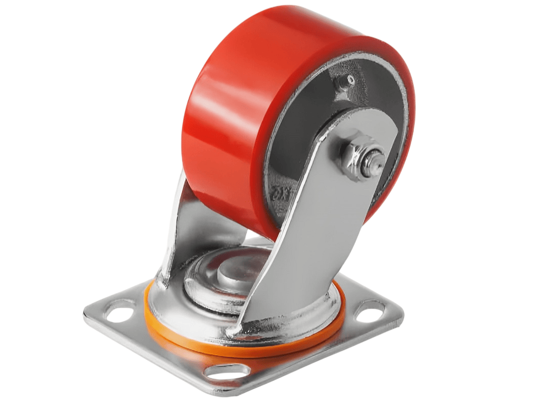 - Поворотная площадка позволяет колёсам свободно вращаться в разных направлениях, что облегчает маневрирование и перемещение тяжёлых грузов;