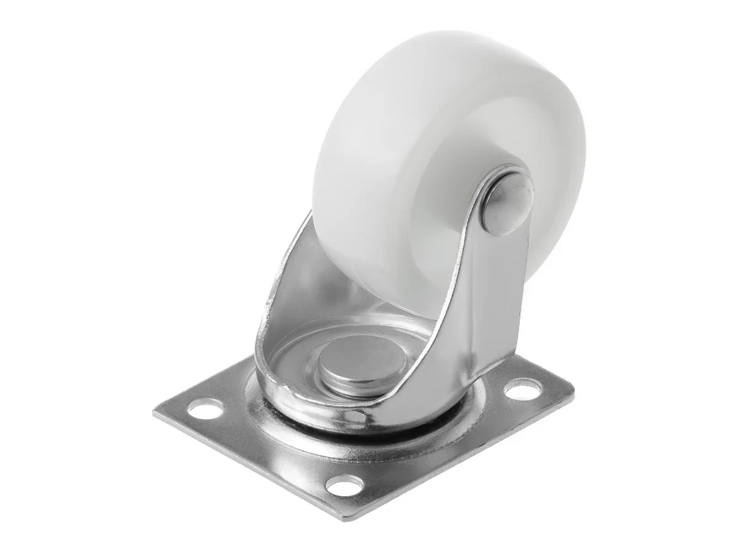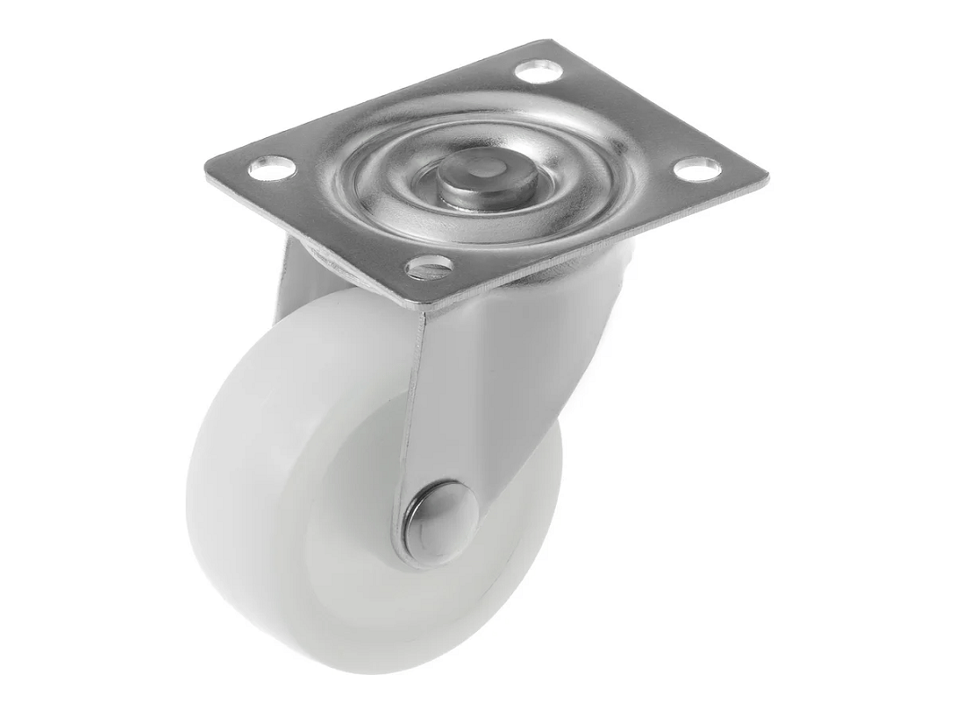 Колесо мебельное полипропиленовое с поворотной площадкой SCpp 15 (38 мм/20 кг) подходит для установки на тумбочки, столики, кресла, пуфики и т. п. Колесо подвижное и может вращаться вокруг оси на 360°.