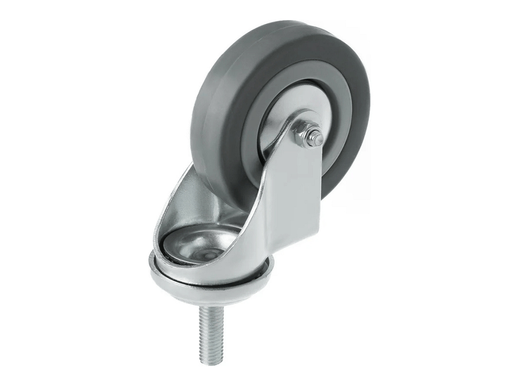 Колесо аппаратное с болтом М10 SCtg 93 (75 мм/70 кг). Ступица этого колеса оснащена подшипником скольжения, что обеспечивает плавный и бесшумный ход. Кронштейн из нержавеющей стали устойчив к коррозии, а поворотный узел оснащён двухрядным шарикоподшипником, что обеспечивает высокую точность и плавность поворотов. Крепление осуществляется всего одним болтом, что обеспечивает простоту и надежность установки.