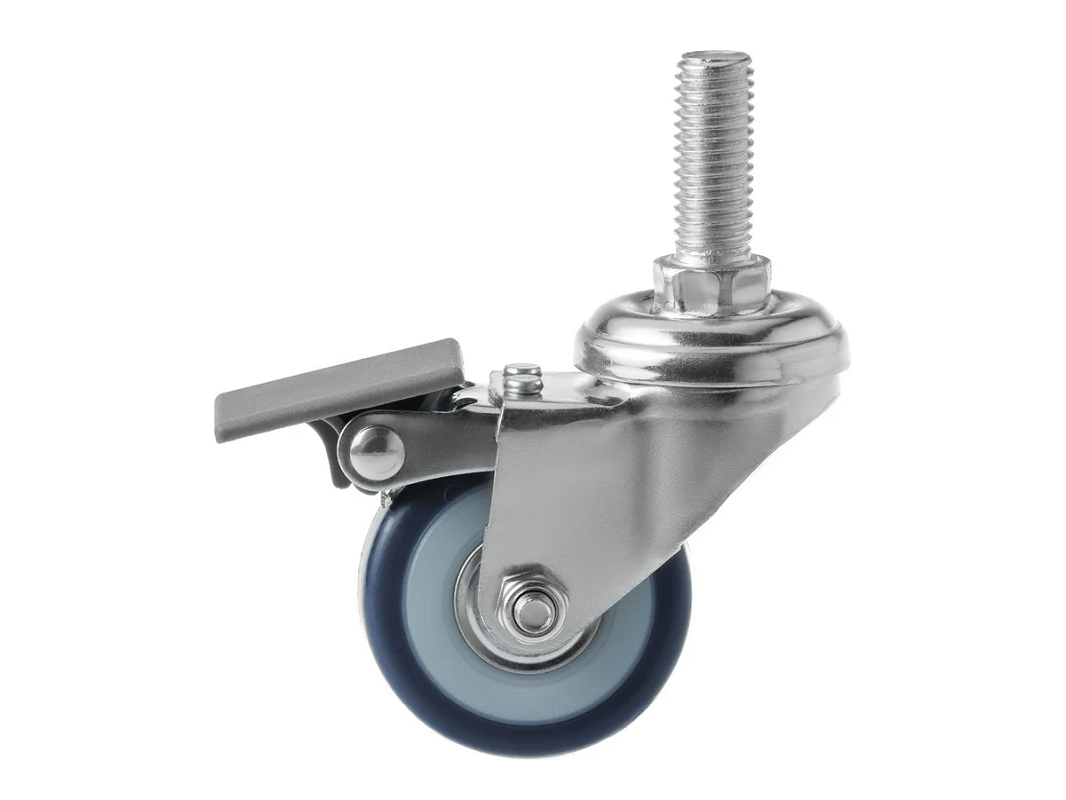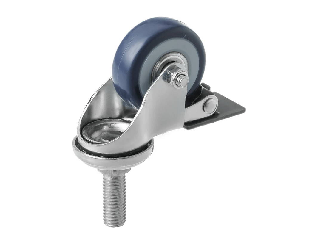 SCtvb 25 Мебельное поворотное с тормозом болт подходит для установки на тумбочки, столики, кресла, пуфики и т. п. Подвижное и может вращаться вокруг оси на 360°. Небольшой размер и нейтральный дизайн придаёт аккуратный вид мебели, а обрезиненная поверхность исключает нежелательное скольжение. Сверху имеется металлическая защита, которая препятствует физическому воздействию и его повреждению. Мебельные колёса легко монтируются. Установить их можно самостоятельно, грузоподъёмность — до 30 кг. Небольшая высота вместе с опорой, для крепления используется стандартный болт М10. Имеет светло-голубой цвет, с помощью тормоза позволяет зафиксировать объект на одном месте.