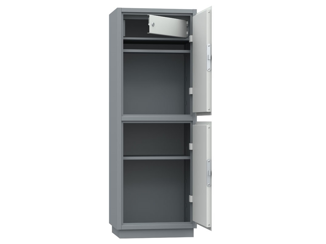 Отличительной особенностью данной модели является наличие трейзера для хранения важных материальных ценностей. Толщина стали на лицевой панели шкафа увеличена для повышения надежности.