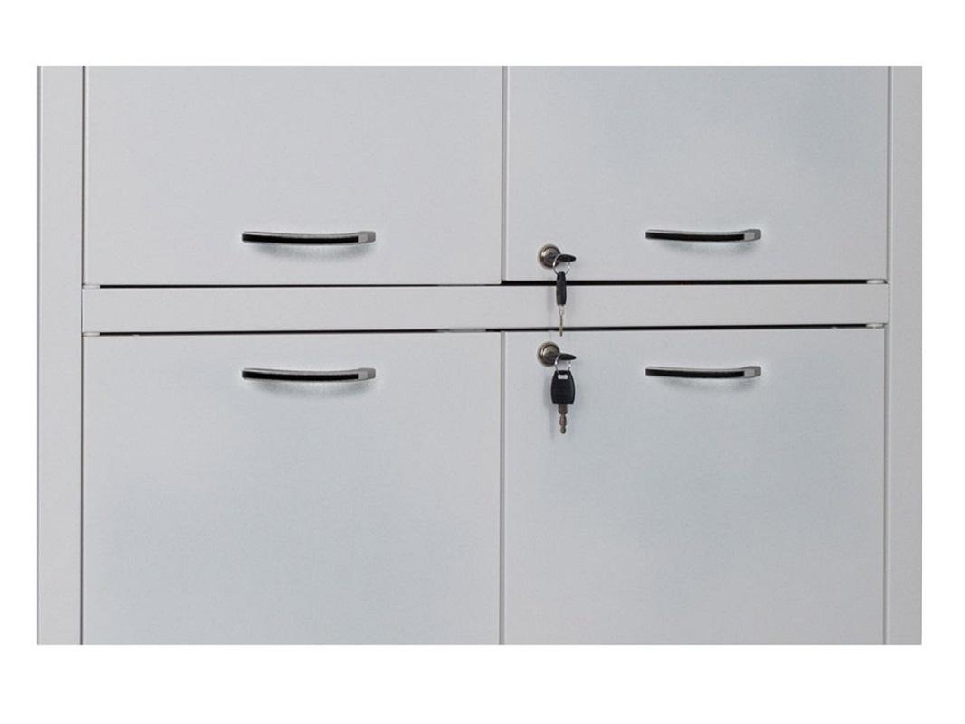 На варианты исполнения влияют технические особенности помещения и функциональная направленность. Ассортимент включает шкафы одностворчатые и двустворчатые, с ящиками и сейфом. Некоторые модели имеют металлические ножки, а также шаровые опоры. Есть возможность запирать целиком либо отдельные секции. Есть стеклянные и глухие дверцы. Распашные дверки или купе. Бывают как напольные, так и навесные, открытые и закрытые.