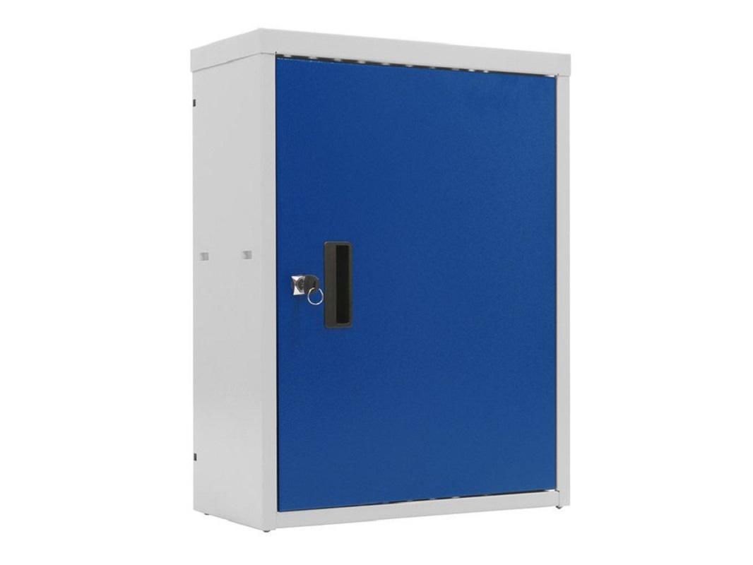 Небольшого размера шкаф устанавливается на перфорированный экран или с помощью крепежа к стене (например, дюбелями). Задняя стенка имеет перфорацию для удобного размещения внутри шкафа, оснащен съемной полкой. Выполнен из высококачественного металла с максимальной нагрузкой до 20 килограмм. Задняя стенка имеет перфорацию в 10 мм с шагом в 38 мм.