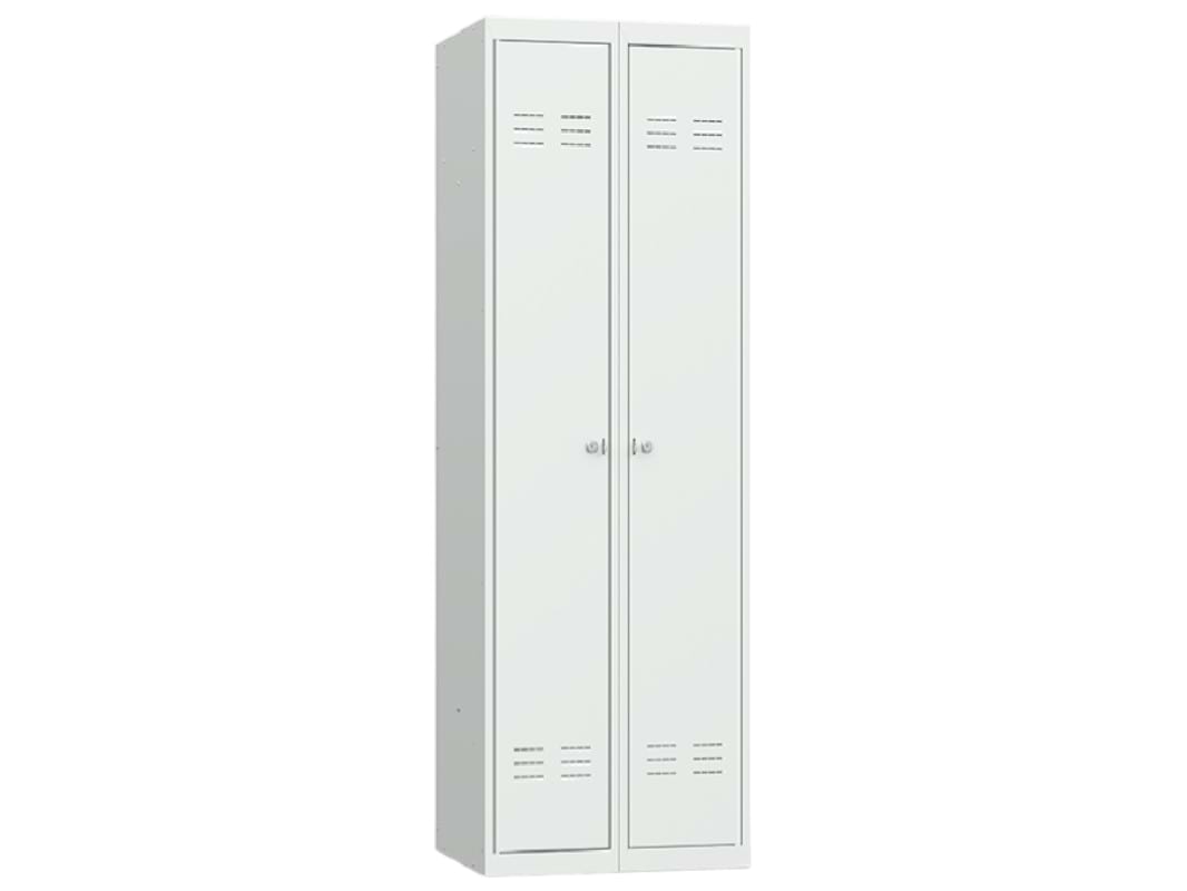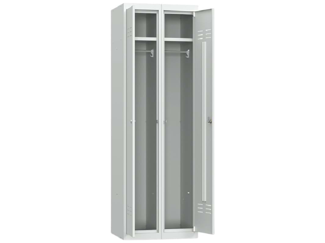 Двухсекционный металлический шкаф для одежды ШР 22-L500 предназначен для хранения разной одежды. Простая и быстрая сборка при помощи зацепов и заклепок. Поставляется только в разборном виде. Оказываем услуги по сборке и установке. Данная модель считается базовым модулем. В дальнейшем возможно установить дополнительные секции, продлевая ряд до бесконечности. Для улучшения циркуляции воздуха шкаф имеет вентиляционные отверстия в дверях и задней стенке. Серии ШР собираются при помощи заклёпок, заклёпщик в поставку не входит. В каждой секции установлена полка и перекладина для вешалок, ширина одной секции 300 мм.