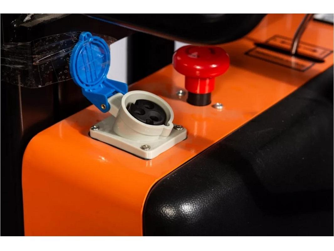 Подъём груза осуществляется при помощи электрического компрессора, управление подъёмом и спуском — рычагом на корпусе; по горизонтали — вручную. Наличие электроподъёма облегчает работу оператора и повышает производительность труда. А оптимальная длина опорных вил обеспечивает высокую устойчивость устройства на рабочей площадке. Штабелёр имеет мощную батарею, что позволяет производить быструю подзарядку в перерывах между погрузочными работами. Продолжительность без подзарядки — до 8 часов. Подходит для складов со средней интенсивностью работ. Рекомендуется использовать технику в отапливаемых помещениях на ровных устойчивых поверхностях. Подъём вил осуществляется без выдвижения мачты, максимальная высота подъёма составляет 1910 мм.