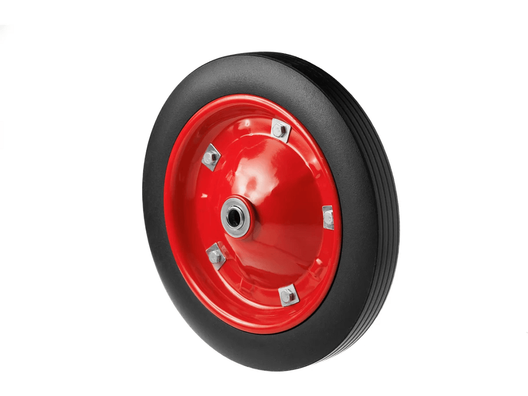 Такие колёса отлично подходят для использования в быту, на стройплощадках, овощебазах, в сельском хозяйстве и на даче. Хотя их стоимость немного выше, чем у других вариантов, они отличаются долгим сроком службы, практически не требуют ухода и хорошо переносят перепады температур.