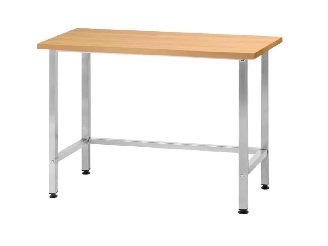 Стол серии NORMA используется для организации рабочего места. Столешница изготовлена из бука толщиной 40 мм. В стандартную комплектацию входит полка обвязка толщиной 1,5 мм — 1 штука.