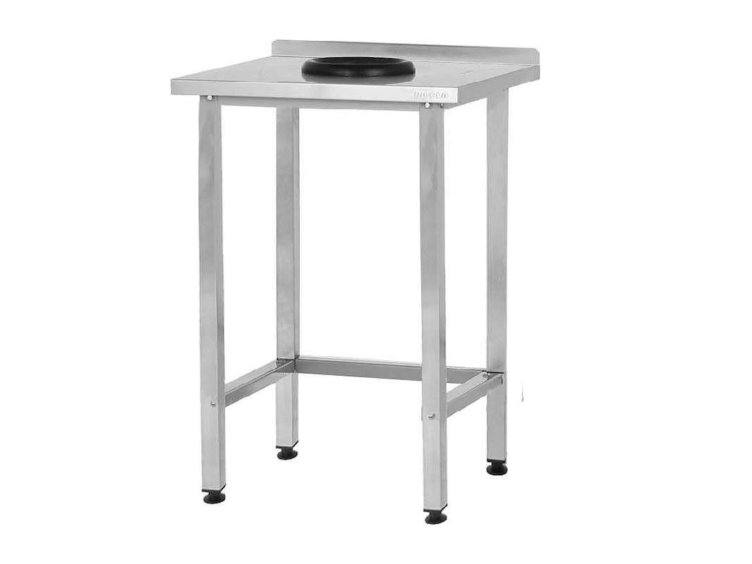 Производственный стол, предназначенный для сбора отходов, обладает характерной особенностью — наличием резинового отверстия, диаметр которого составляет 166 миллиметра внутри и 234 миллиметра снаружи. Это отверстие расположено в центре столешницы. Каркас изготовлен из стали с полимерно-порошковым покрытием RAL.