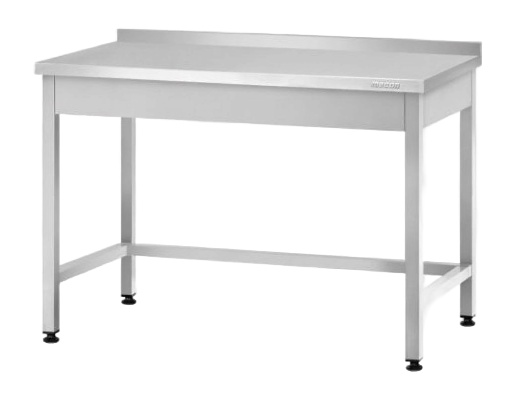 Стол серии PROFI используется для организации рабочего места. Столешница изготовлена из ЛДСП толщиной 16 мм с покрытием из нержавеющей стали AISI 304 и толщиной 0,8 мм. В стандартную комплектацию входит полка обвязка толщиной 1,5 мм — 1 штука.