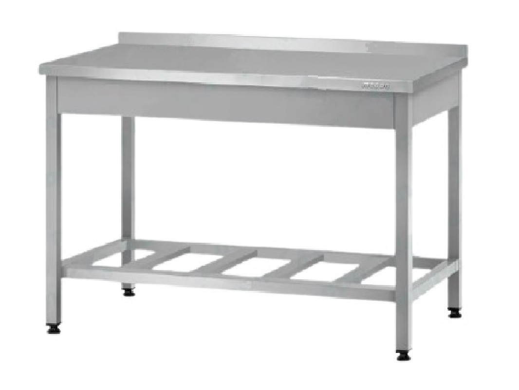 Стол серии PROFI используется для организации рабочего места. Столешница изготовлена из ЛДСП толщиной 16 мм с покрытием из нержавеющей стали AISI 304 и толщиной 0,8 мм. В стандартную комплектацию входит полка решетка толщиной 1,5 мм — 1 штука.