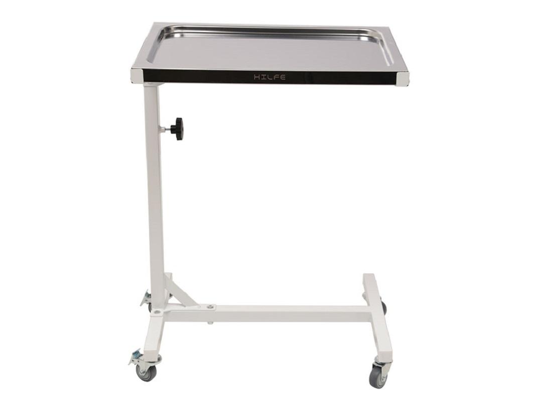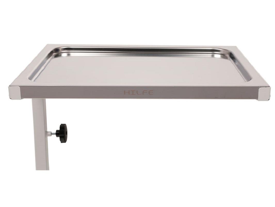 Процедурный стол МД CX используется для размещения разного инструментария, приспособлений и другого медицинского оборудования. Полка изготовлена из нержавеющей стали толщиной 1 мм. Сам столик оснащен удобными колесами диаметром 50 мм, в стандартную комплектацию входят колеса с тормозом. Максимальная высота поднятой полки составляет 1055 мм, минимальная — 790 мм. Столики-тележки (процедурные, манипуляционные, инструментальные) используют для расположения лекарств, их перевозки и хранения мединструментов и расходных материалов. Рабочая поверхность способная наклоняться, оснащен небольшими колесиками, с их помощью намного удобней перемещать стол. Изготавливают из профиля стальной трубы, покрытие эпоксидно-порошковое (повышает стойкость изделия к частой обработке спецсредствами). Безопасны, надежны и отличаются хорошей износоустойчивостью. Особенность использования мед. мебели определяет характер требований к ней. Они должны соответствовать гигиеническим нормам и стандартам, которые устанавливает санэпиднадзор. Безопасность, надежность, долговечность, функциональность, комфорт, эргономичность и эстетичность. Обладают устойчивостью к влаге и химическим веществам. Высокий показатель выдерживаемой нагрузки. При выборе немаловажно обращать внимание на обработку швов, качество покрытия и прочность фурнитуры.
