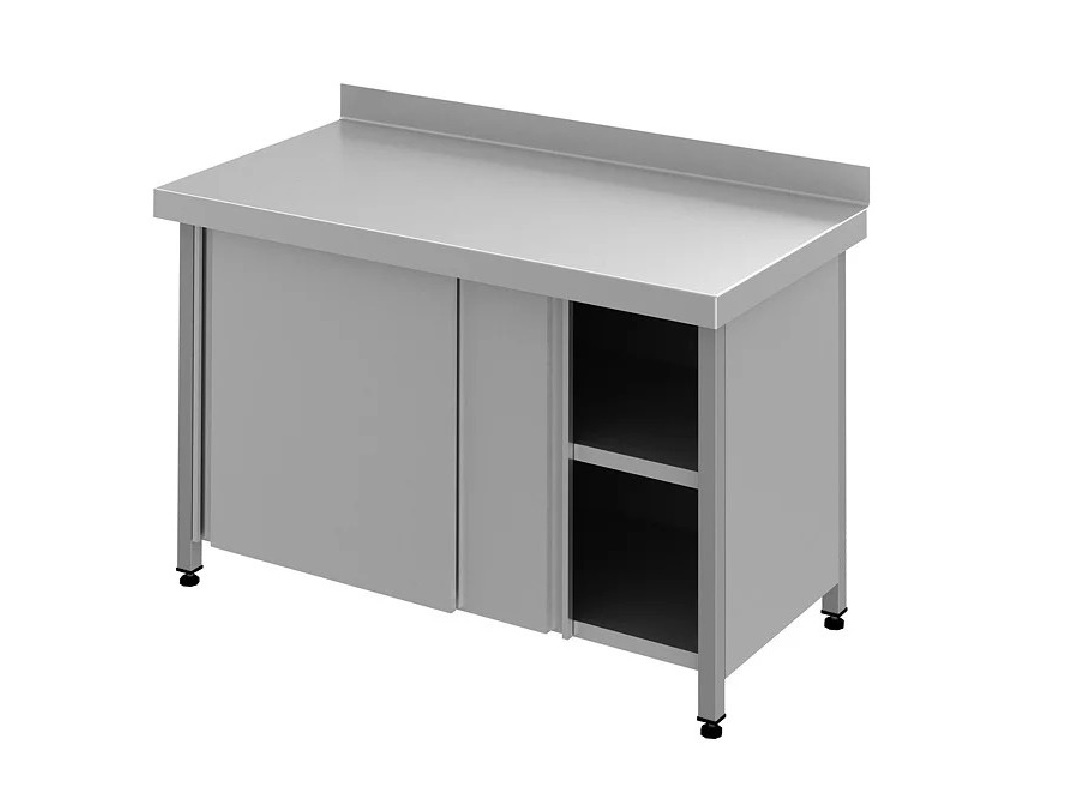 Столешница и двери шкафа выполнены из высококачественной нержавеющей стали, а подложка — из ламинированной древесно-стружечной плиты толщиной 16 мм. С покрытием из нержавеющей стали AISI 304. В стандартную комплектацию входит борт высотой 60 мм.