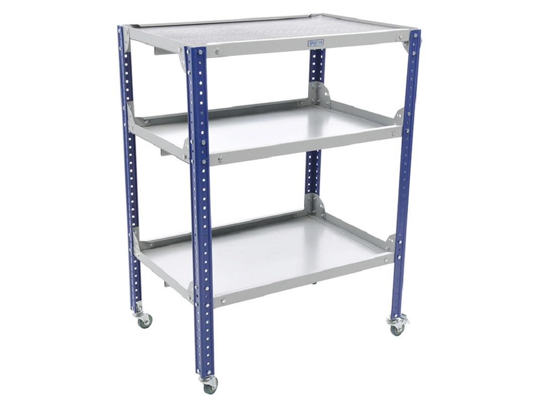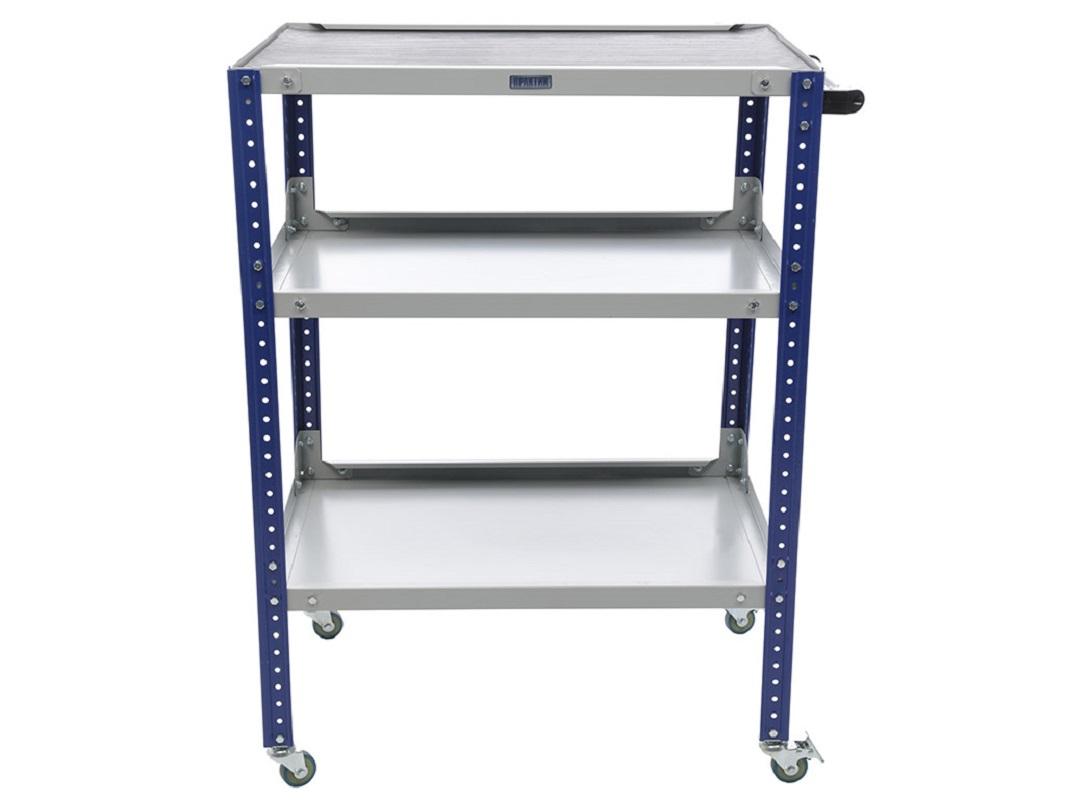 Инструментальная тележка WDS GARAGE используется для грамотной организации рабочего места — это влияет на эффективность и оперативность работы. Помогают хранить и оперативно перемещать инструмент в производственных и ремонтных мастерских, автосервисах и т.д. Предназначены для хранения и оперативного перемещения инструмента на производственных предприятиях, в автосервисах и ремонтных мастерских. Выпускаются как открытого, так и закрытого типа. Изготовлена из высокопрочной стали. Удобные ящики с телескопическими направляющими и системой полного выдвижения. При необходимости на каждую полку можно установить выдвижной ящик для тележки Garage. Способно выдержать нагрузку до 99 килограмм с нагрузкой на каждую полку максиму до 33 килограмм. Поставляется в разборном виде, модель сделана на основе архивных стеллажей (стойка используется такая же как и у архивного стелллажа, за исключение цвета).