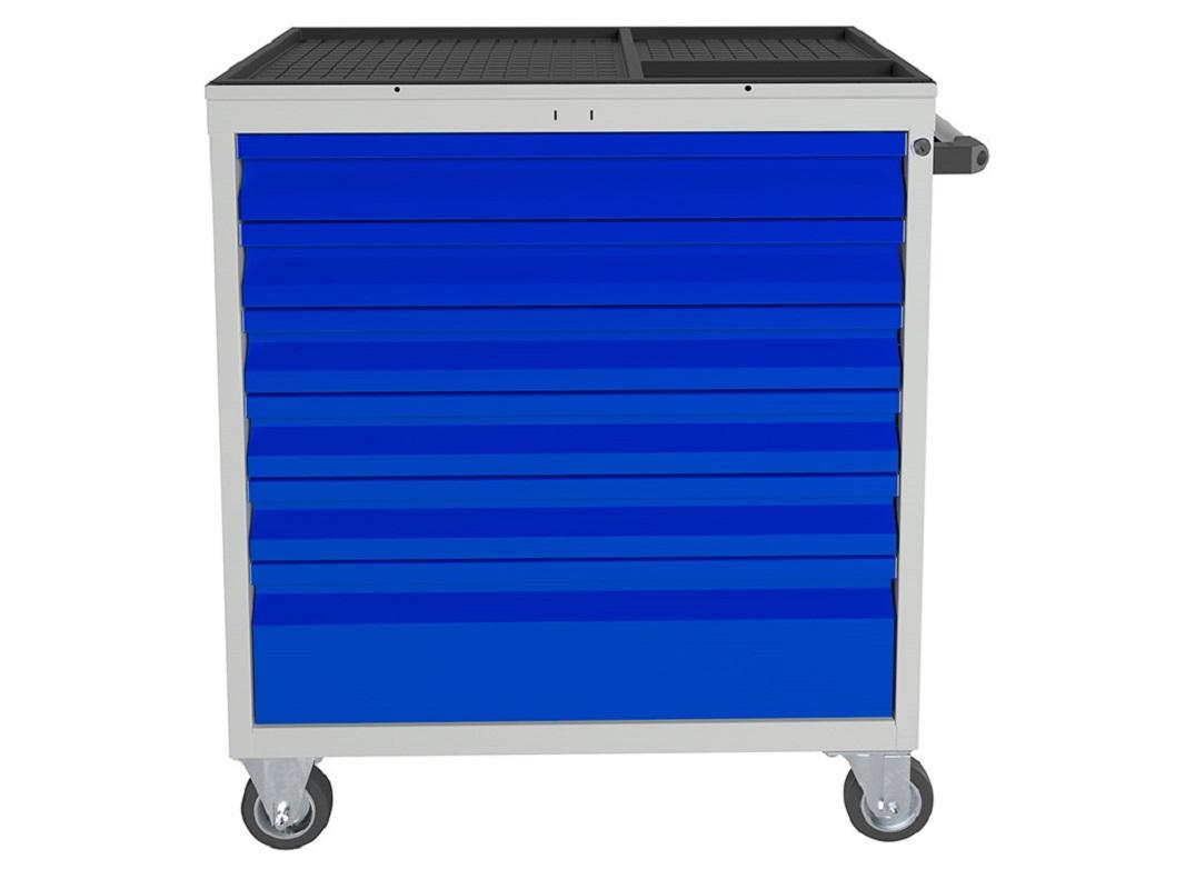 Изготовленные из высокопрочной стали, эти тележки оснащены удобными ящиками с телескопическими направляющими и системой полного выдвижения. Конструкция включает в себя два больших выдвижных ящика и три малых, что позволяет распределить инструменты оптимальным образом.