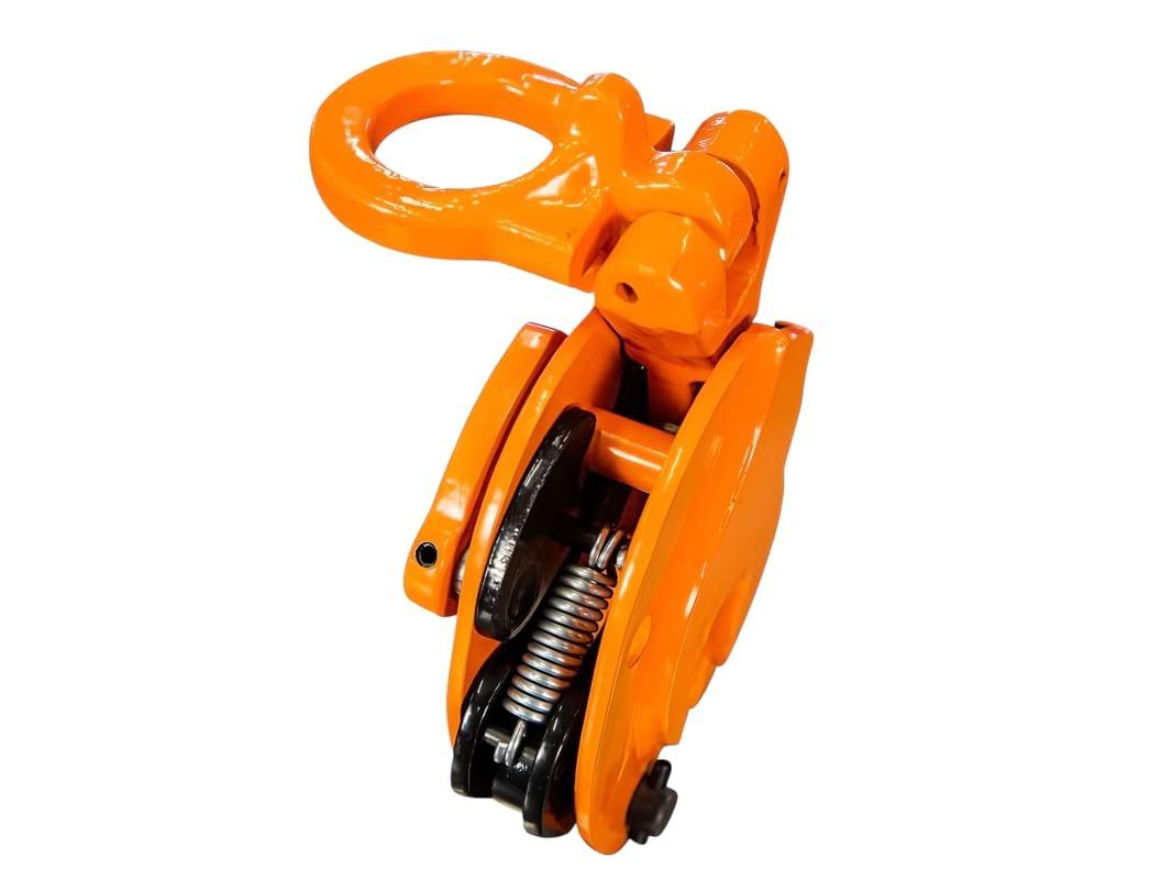 Вертикальные захваты используются для подъема листового металла, перемещения и удержания различных плоских материалов. Одно устройство способно транспортировать небольшой лист. Для подъема габаритной плиты необходимо несколько приспособлений. Рабочие поверхности крепежного механизма имеют рифленую поверхность, что исключает скольжение материала.