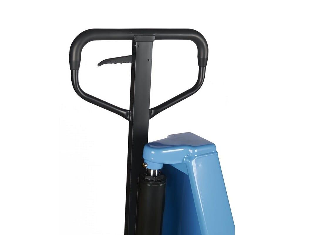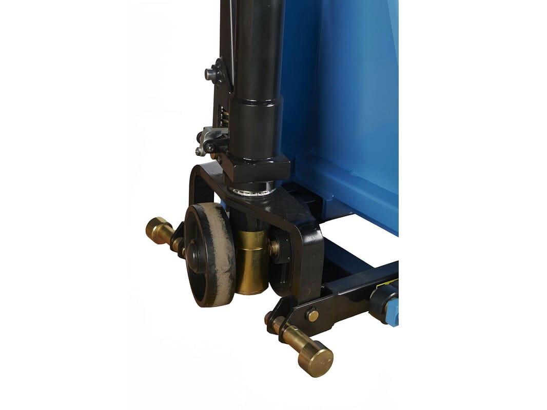 При подъёме на высоту от 20 см и выше срабатывает механизм «ножницы», который предотвращает движение тележки, обеспечивая безопасность. На более низких высотах, до 20 см, эта техника функционирует как обычная гидравлическая тележка.